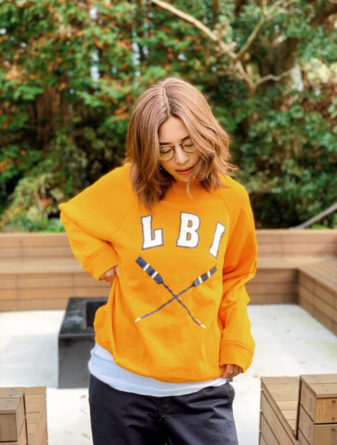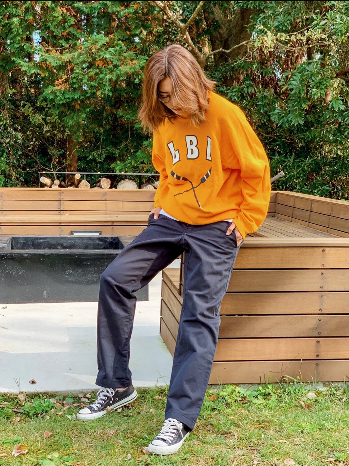 メンズのラージサイズだけどラグランスリーブだから肩を落として着れるし、オーバーサイズが可愛いと思う。