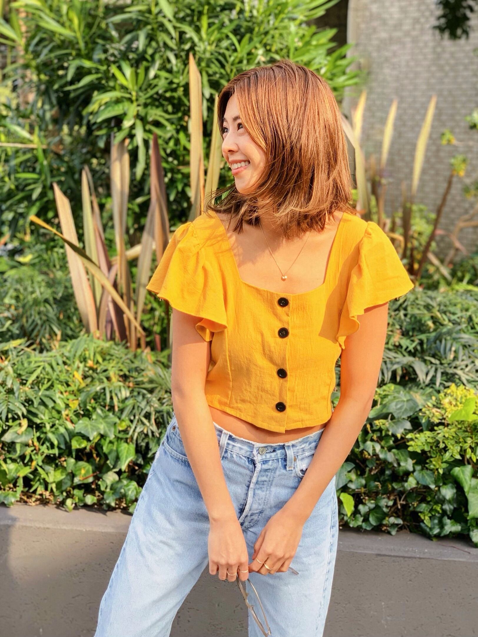 女の子らしいアイテムなので個人的にはデニムやワイドパンツで甘すぎなく着こなすのがおすすめ♡