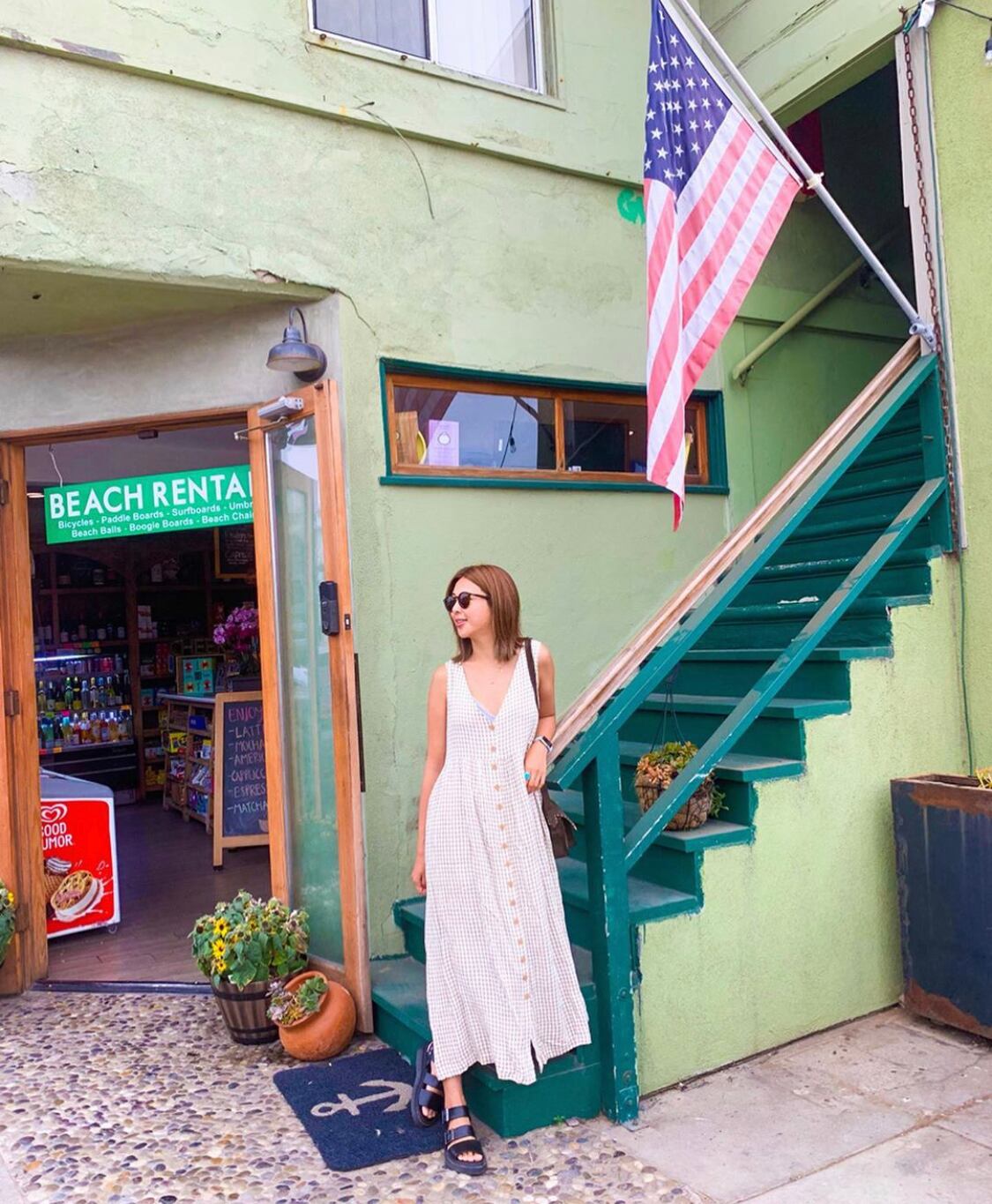 ◇ベージュのギンガムチェックワンピース。