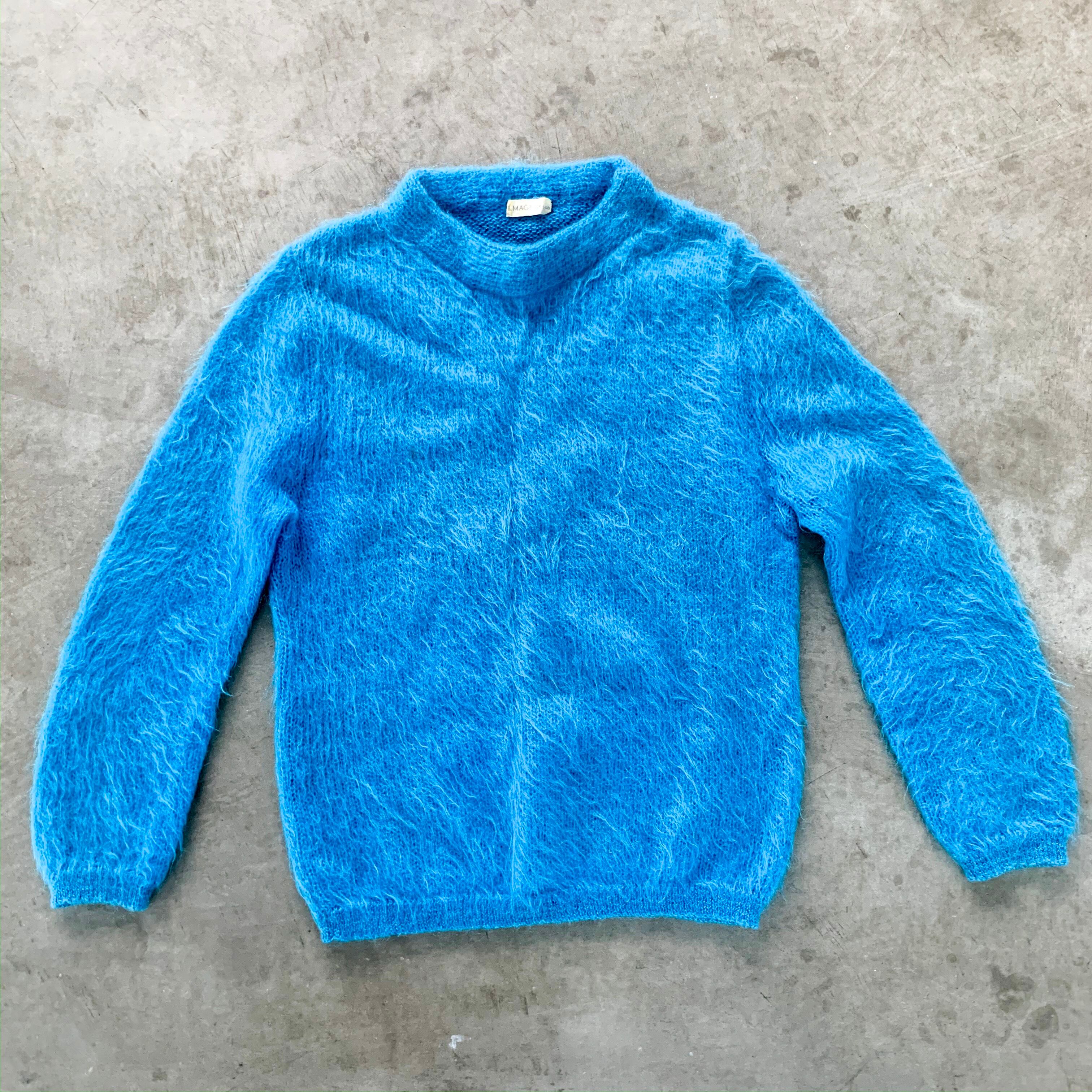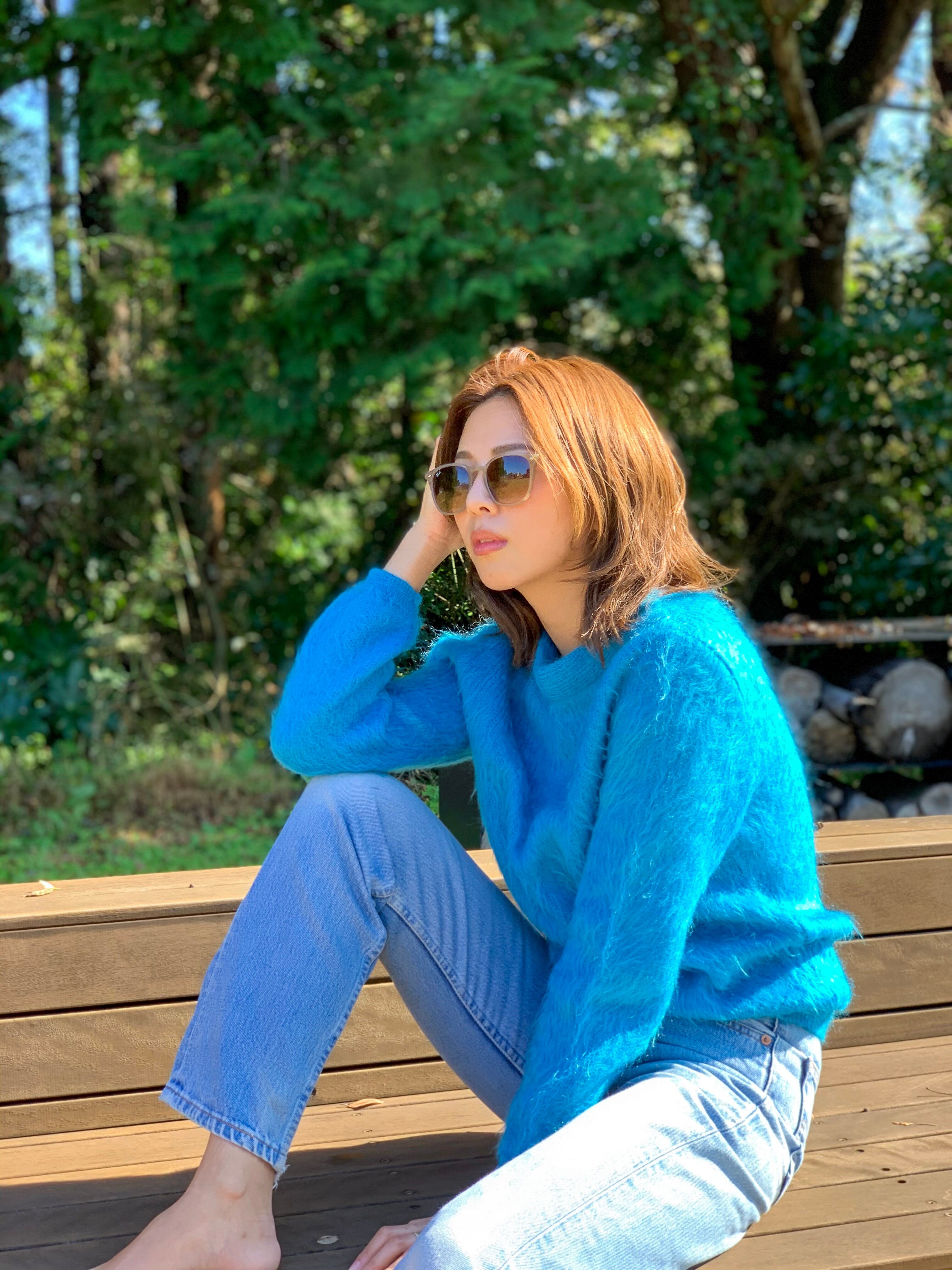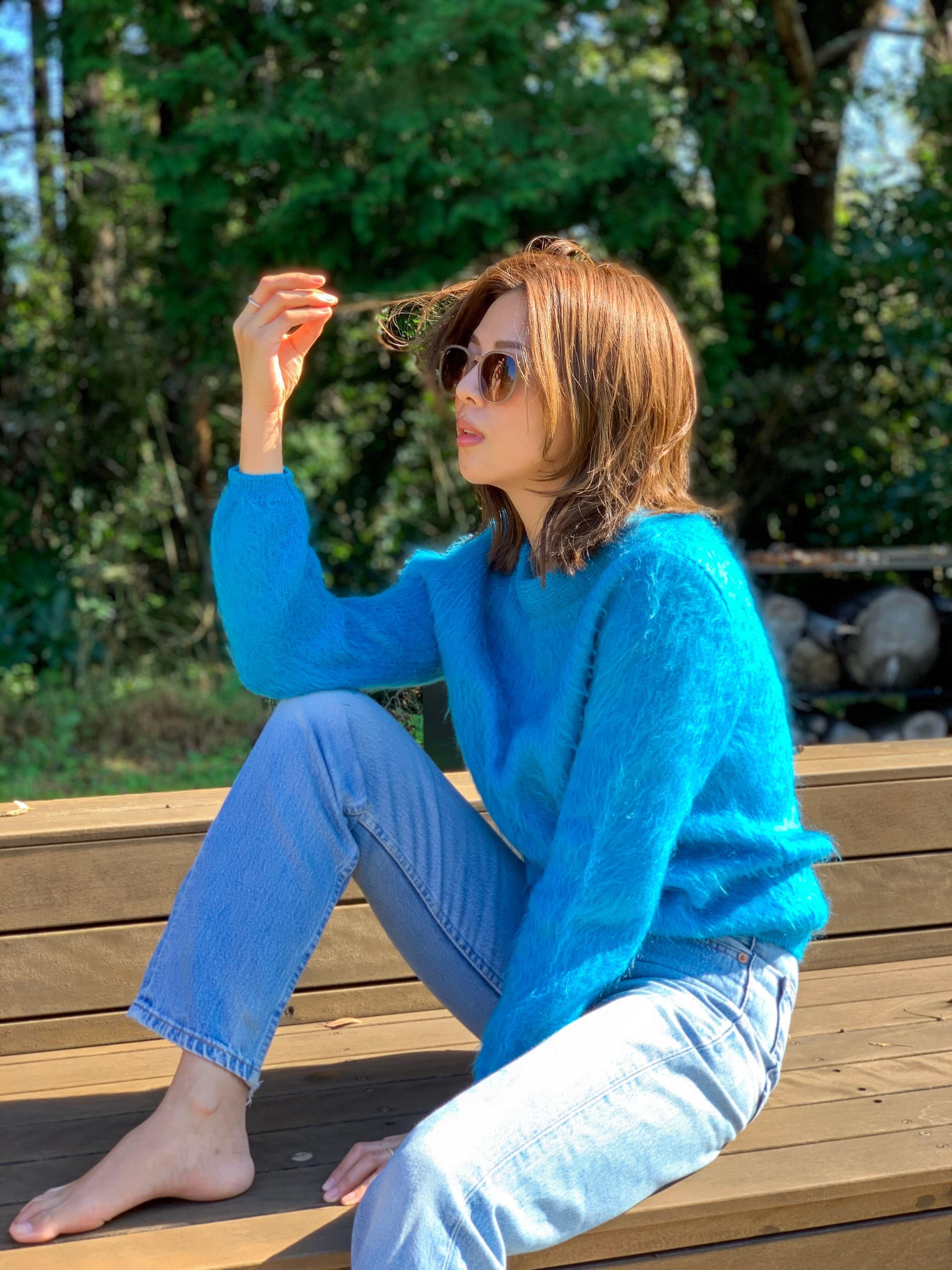 ◇ブルーのモヘアニット。