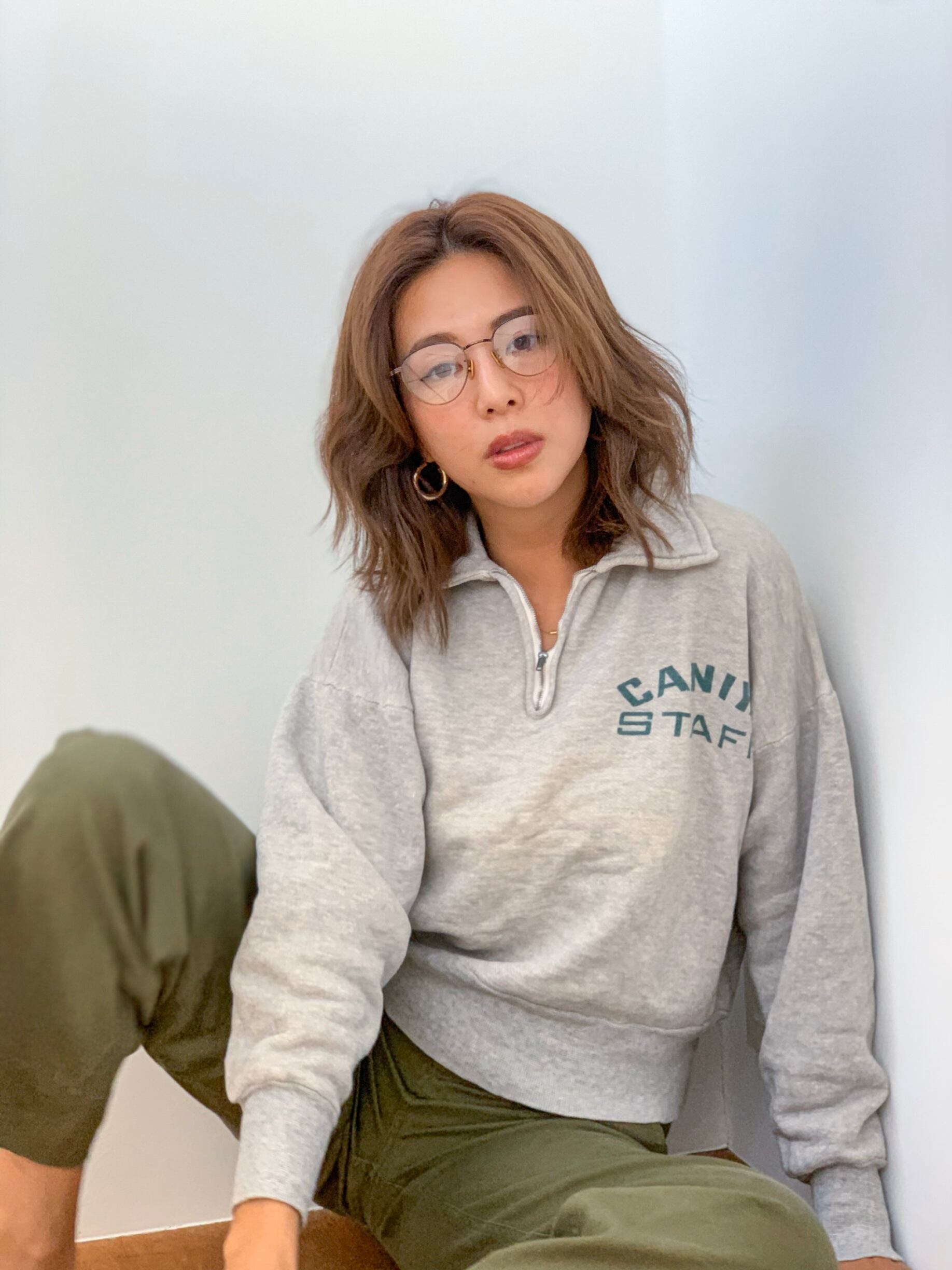 襟付きのスウェットでカジュアルなんだけどサイズ感が女の子らしい一枚。